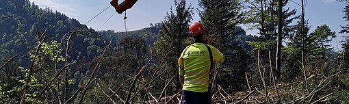 Besteht eine Internetverbindung kann in Seilaplan im Abschnitt «Verlauf der Seillinie» auf das Layer-Symbol geklickt werden. Dadurch wird automatisch die Swisstopo Landeskarte oder die Open-Street-Map-Karte (für Gebiete ausserhalb der Schweiz) geladen.